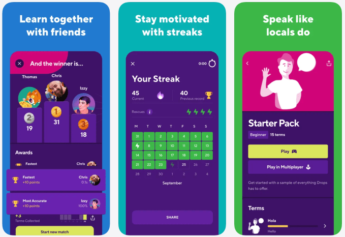Если вы хотите выучить новый язык, но хотите попробовать что-то другое, кроме Duolingo, Drops - хороший вариант. В приложении используются увлекательные мини‑игры, которые помогут вам пополнить словарный запас и использовать распространенные фразы более чем на 45 языках, а небольшие уроки рассчитаны на выполнение примерно за пять минут в день.
