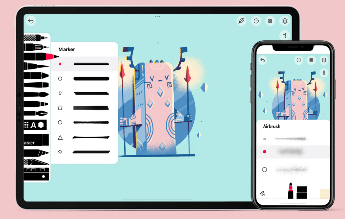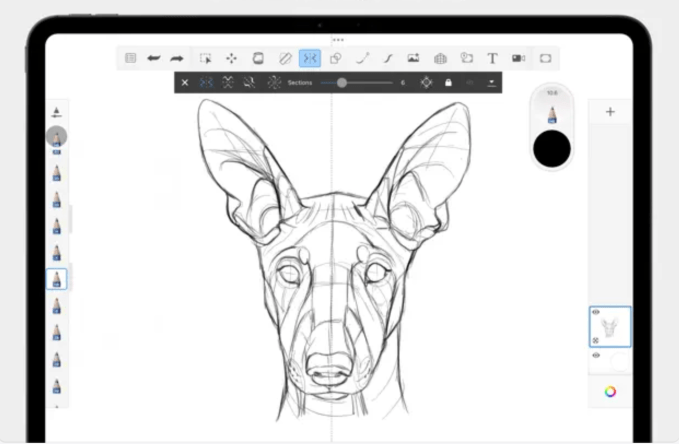 Приложение позволяет создавать иллюстрации, брендинг, логотипы, иконки, дизайн пользовательского интерфейса, типографику, плакаты, этикетки, флаеры, стикеры, концепт-арт, цифровое искусство и многое другое. Оно поддерживает точность Apple Pencil, чувствительность к нажатию и наклону.
