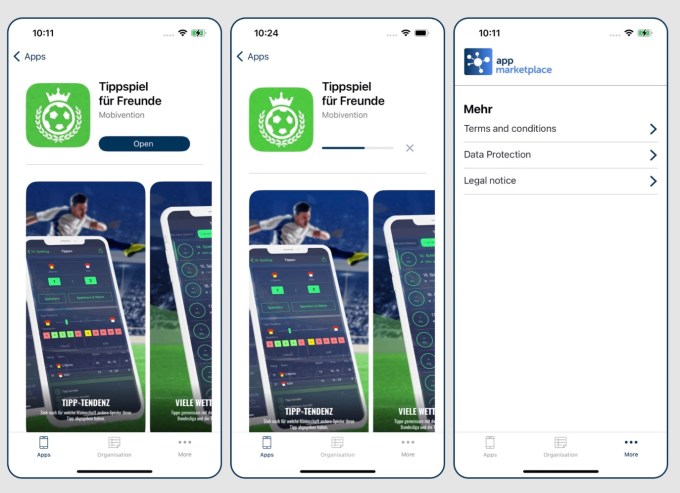 Магазин приложений Mobivention marketplace, ориентированный на B2B, позволяет компаниям ЕС распространять свои внутренние приложения, которые используются сотрудниками, но не могут или не должны публиковаться в Apple App Store. Компания также предлагает разработку специализированного app marketplace для компаний, которые хотят предложить сотрудникам собственный магазин приложений только для своих корпоративных приложений. Крупные компании могут даже лицензировать технологию Mobivention, чтобы более глубоко адаптировать app marketplace к своим потребностям.