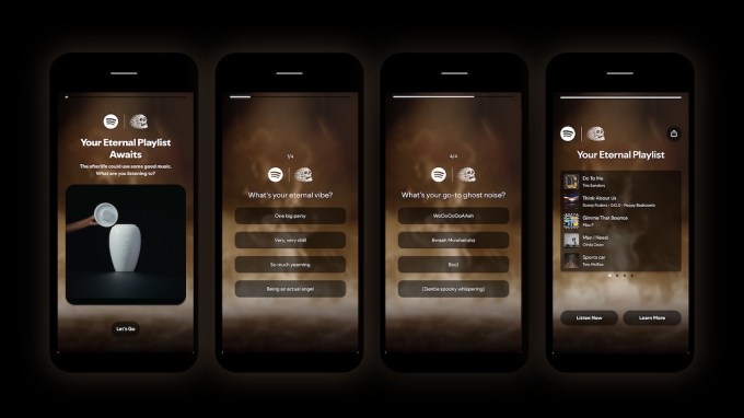 Когда вы получите урну, вы сможете создать свой собственный Вечный плейлист на Spotify, ответив на такие вопросы, как “Какая у вас вечная атмосфера?” или “Какой ваш любимый призрачный шум?”. Затем Spotify использует ваши ответы и историю прослушиваний для создания пользовательского списка воспроизведения, который синхронизируется непосредственно с динамиком urn и которым можно поделиться с друзьями и семьей.