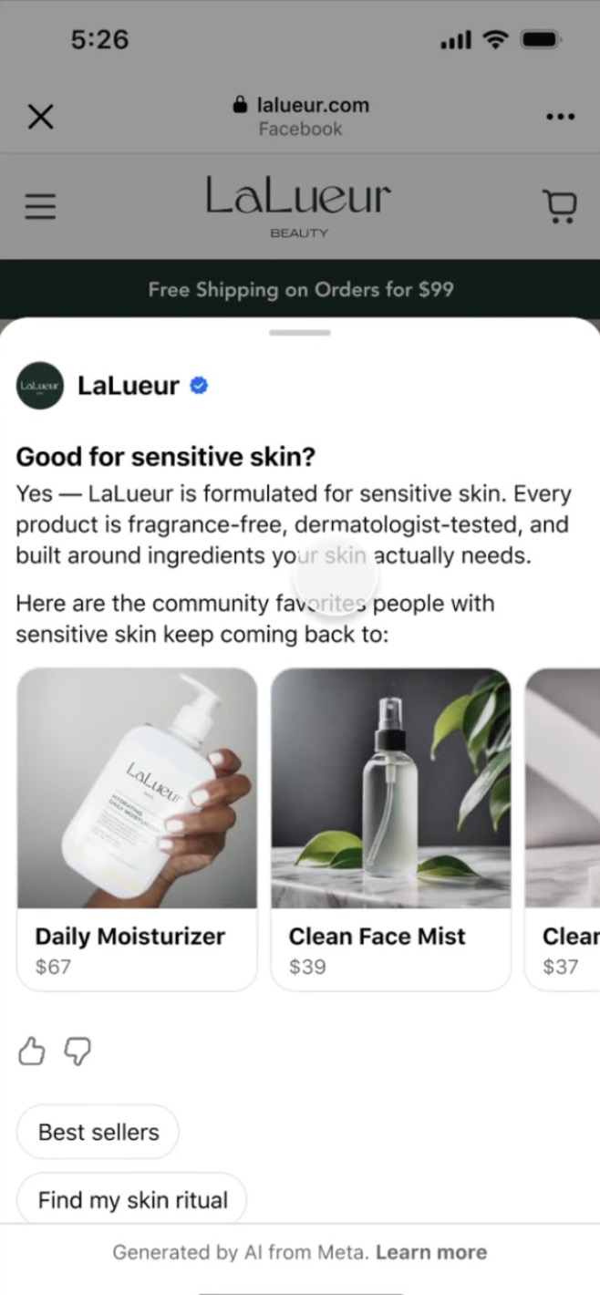 На конференции Shoptalk 2026, которая состоялась на этой неделе, технический гигант объявил, что начнет тестирование нового приложения, которое позволяет потребителям просматривать больше информации о продукте и сводку отзывов пользователей после того, как они нажмут на объявление или посетят веб-сайт в Facebook или Instagram.